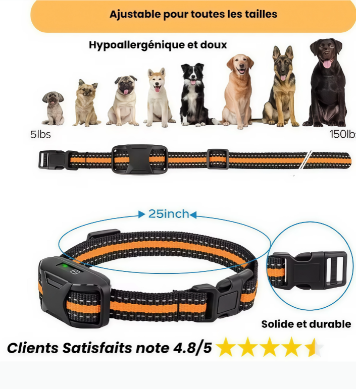 Dites ADIEU aux comportements indésirables de votre Chien grâce à notre Collier de Dressage. Ce collier est soigneusement emballé dans un packaging haut de gamme et bénéficie d'une fabrication de grande qualité. De plus, notre garantie et notre politique de retours facile vous offrent une tranquillité d'esprit absolue.